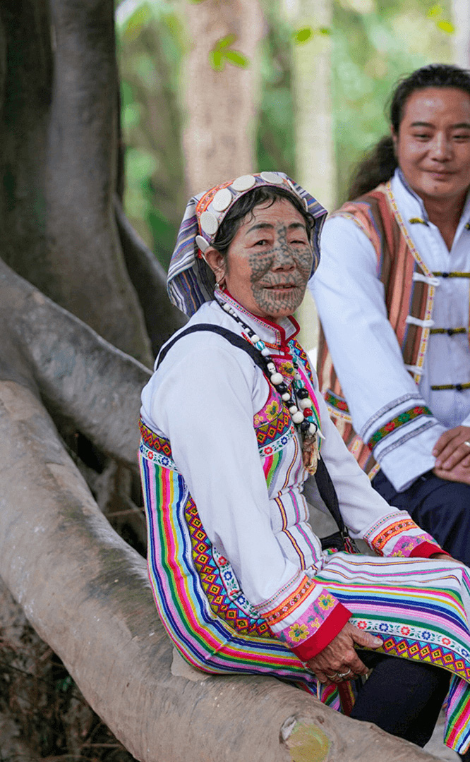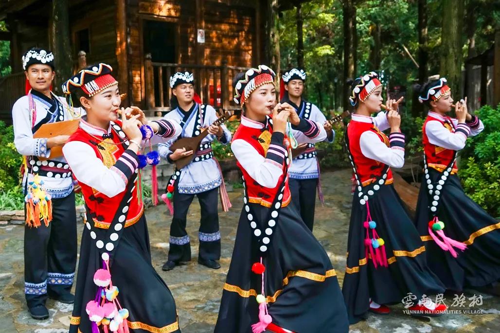 彝族在云南境內(nèi)約471萬人,是省內(nèi)人口最多、分布最廣的少數(shù)民族,主要聚居在金沙江、元江流域和哀牢山、無量山腹地。彝族是一個能歌善舞的民族,民間打歌、跳樂之風(fēng)盛行,大三弦、跌腳舞久負(fù)盛名。火把節(jié)是彝族最具特色的民族節(jié)日。彝族村占地50余畝,三虎浮雕墻與虎頭內(nèi)祖師形象表現(xiàn)了彝族虎鷹文化。太陽歷廣場圖騰柱上有太陽、虎、火和八卦圖形象,周圍環(huán)繞著10個朝向不同的月球造型,外圓周有12生肖石雕。依山而建的“...